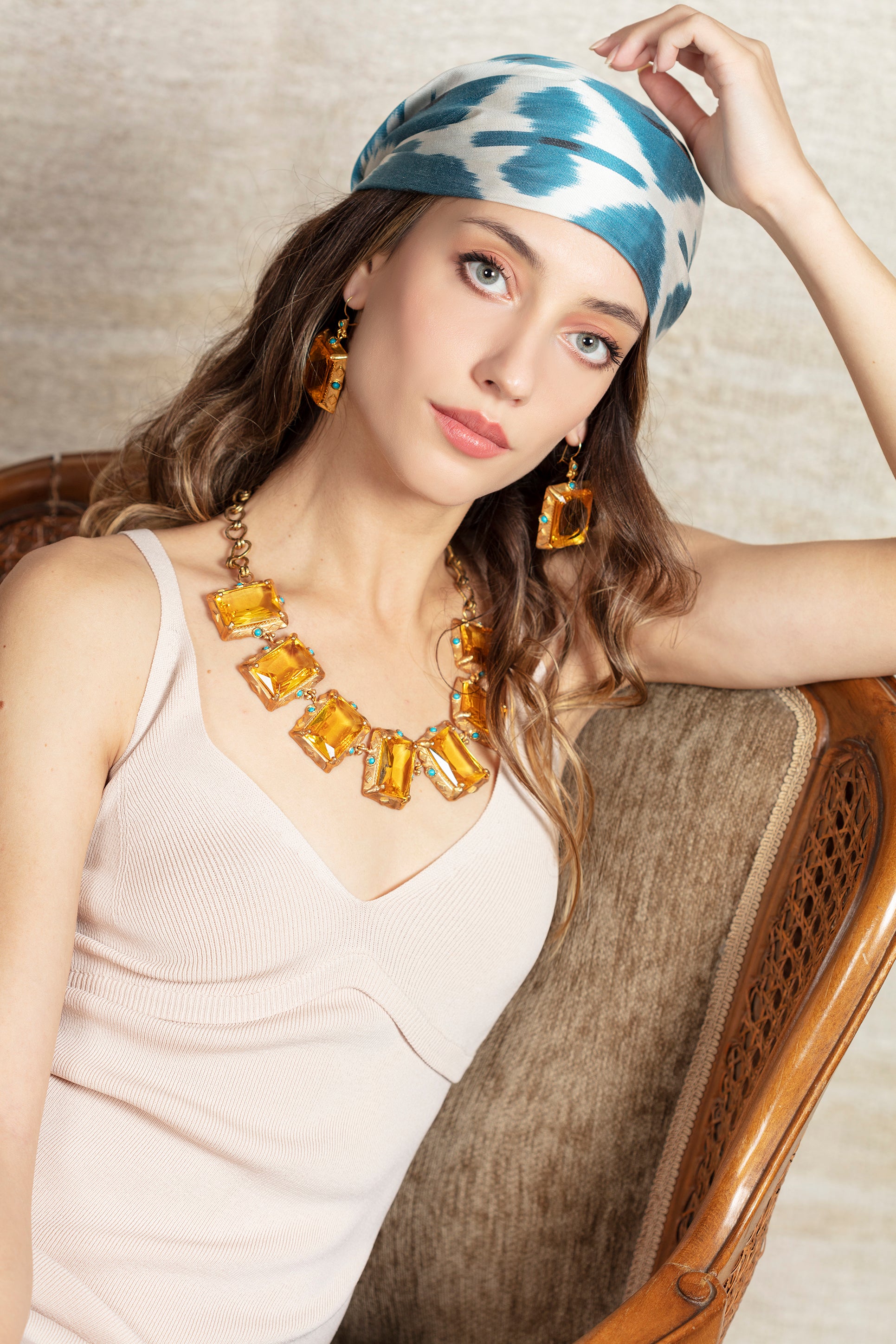 A beautifully hand-created necklace with earrings ıt was designed by being inspired by the jewels that Zeynep Sulatan, who lived in the Ottoman period, used at that time.